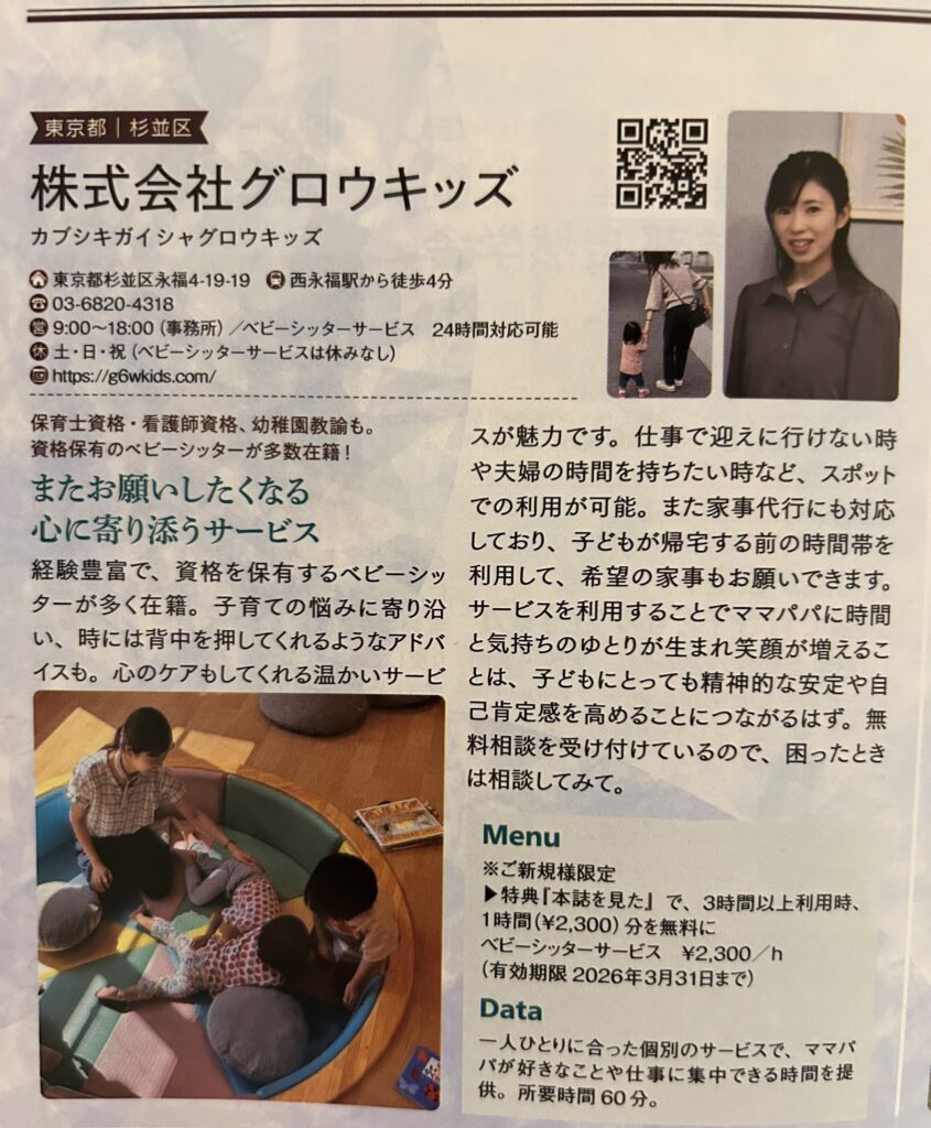 こうした中で、より多くの子育て家庭に利用できる仕組みを広めるための取り組みとして、グロウキッズのベビーシッターサービスに注目した内容となっています。